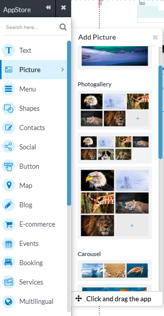 To include a photo Gallery select the App photo Gallery from our Appstore and customise accordingly, by clicking on the edit bar, to select the images directly from the folder on your computer.